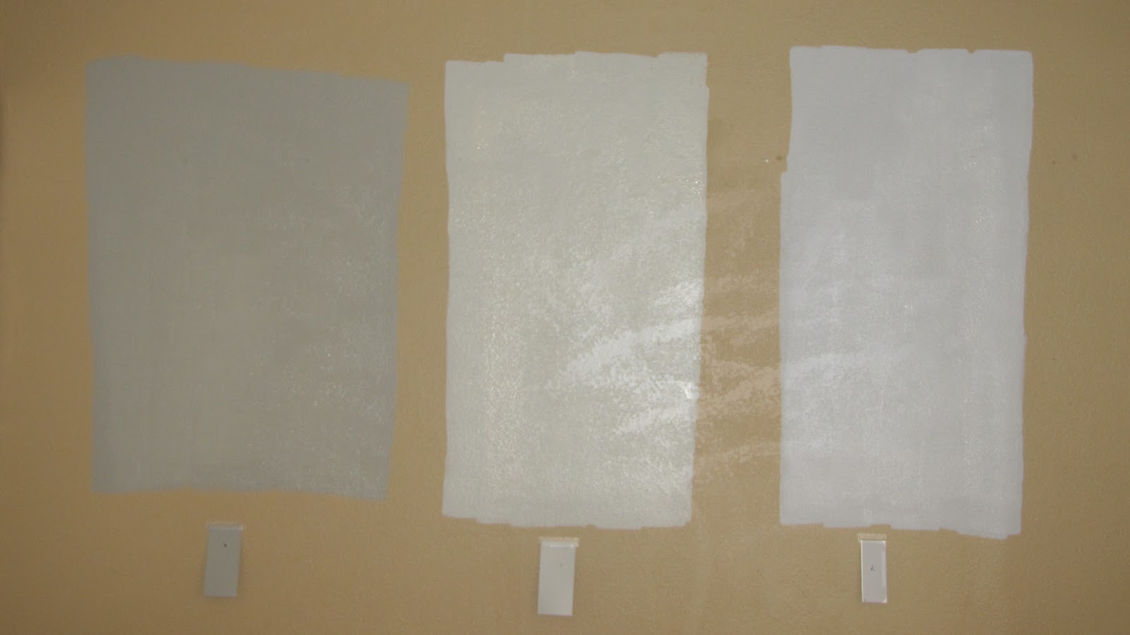 Here is the first take at a few shades of grey I painted on the walls with some samples from Home Depot. I think the one of the right turned out too blue-ish, and the one of the left is too dark. The one in the middle might be just right though. =)